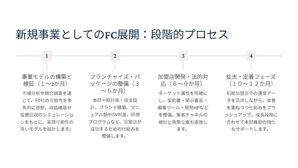 このような落とし穴を避けるため、当社では**「新規事業」としてのFC構築**を提案しています。